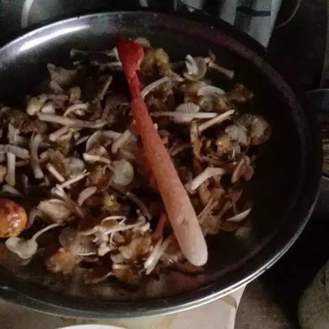 5、热锅热油,下大蒜,葱白,干辣椒翻炒出香味;