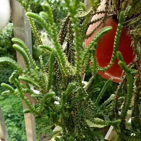 若绿叶片很小,且大部分时间会呈现绿色,只有日照充足时顶部的叶片才会变红。和青锁龙比较像,叶片没有那么紧密。若绿是青锁龙的变种,若绿与青锁龙相比,若绿的分枝除了有垂直向上的外还有横斜匍匐的,叶排列散乱,有时4棱有时不呈4棱。 若绿