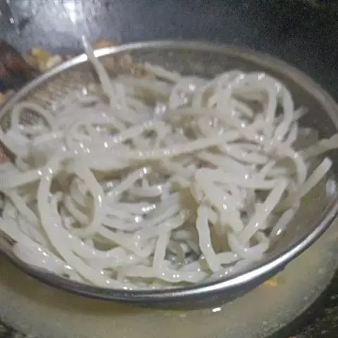 秘制炒卤:干煸羊肉,炒黑酱。精选山羊肉切丁备用,葱姜香料备用。油热,葱姜炸黄,煸炒羊肉30分钟左右,改小火加秘制黑酱翻炒10分钟。纯手工烩面,清汤煮面,煮熟后配以榨菜丁、虾米、秘制炒卤盛碗。面筋、味美,卤香四溢。