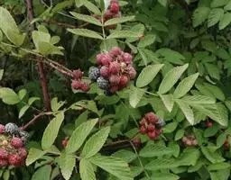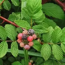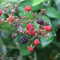 覆盆子为灌木,高1—2米;枝褐色或红褐色,幼时被绒毛状短柔毛,疏生皮刺。小叶3-7枚,长卵形或椭圆形,…