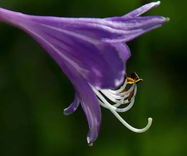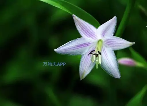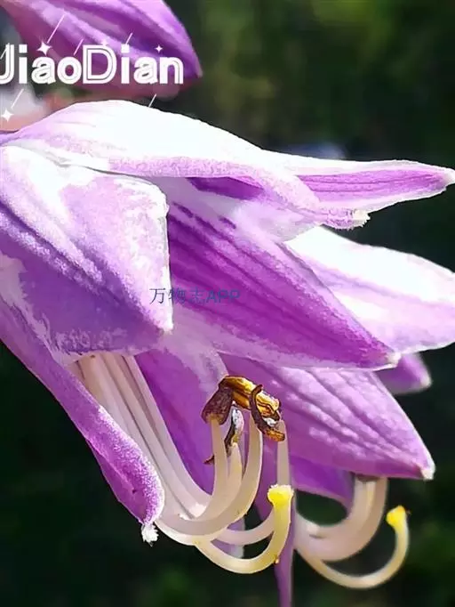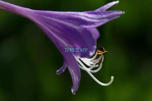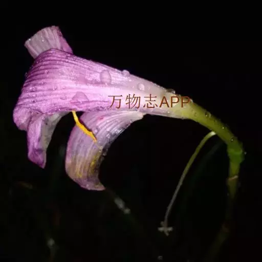 花葶高33-60厘米,具几朵至十几朵花;苞片近宽披针形,长7-10毫米,膜质;花单生,长约4厘米,盛开时从花被管向上逐渐扩大,紫色;雄蕊稍伸出于花被管之外,完全离生。花期8-9月。