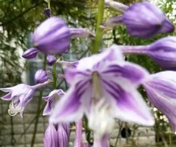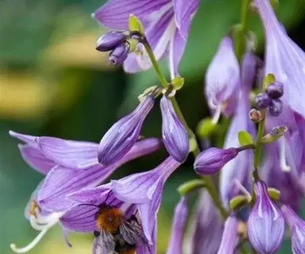 紫玉簪(学名:Hosta albo-marginata (Hook.) Ohwi)是天门冬科,玉簪属多年生草本植物,根状茎,叶片狭椭圆形或卵状椭圆形,先端渐尖或急尖,基部钝圆或近楔形,花葶高可达60厘米,数朵花;苞片近宽披针形,膜质;花单生,盛开时从花被管向上逐渐扩大,紫色;8-9月开花。