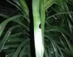 白绢病:主要是植株间过于密集、雨季积水时间过长造成的。病株根颈表皮呈褐色水渍状,长有月色菌丝,最后形成白色菌丝层,状如白色丝绢,导致叶柄基部腐烂、倒伏。药物防治:发病初期用50%多菌灵600-800倍液或25%克枯星300-400倍液浇灌基部。