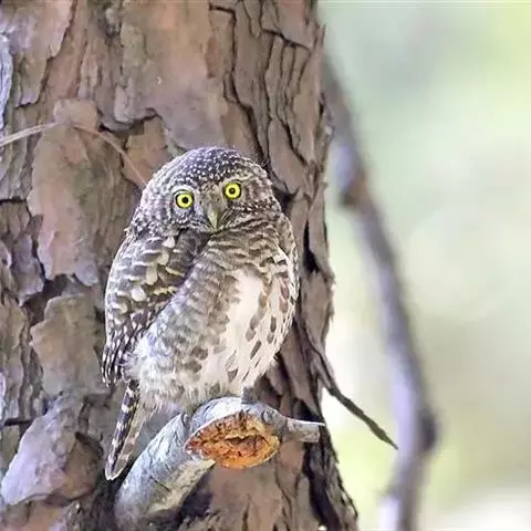 鬼鸮是鸟纲鸱鸮科的鸟类, 全长23-26厘米。共有6个亚种。雌雄羽色相同。额、头顶及枕部褐色,…