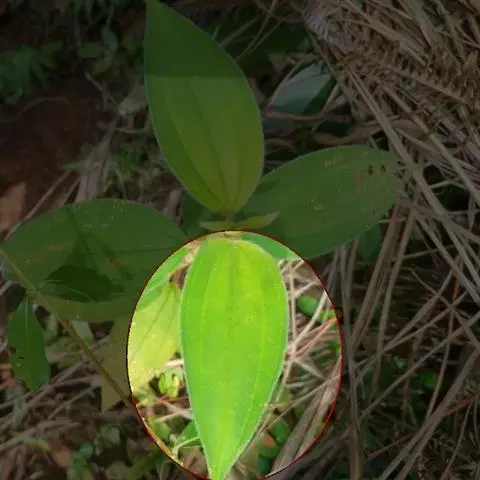 裸蒴原植物图片 裸蒴 蔓生草本,全株有腥味,光滑无毛。茎软弱,具节,呈圆柱状,一侧有浅纵沟。叶互生,纸质;宽卵形,长2.5~6厘米,宽2.5~6.5厘米,先瑞短尖,基部耳状心形,全缘,呈波状;掌状网脉,主脉5条;叶柄长2.5~4厘米,扁圆形,腹面具纵槽;托叶摸质,与叶柄合生,基部半抱茎,长度约为叶柄的二分之一。