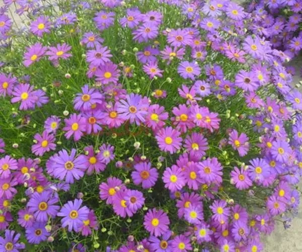 五色菊,株高20~45厘米,花径4厘米,花色丰富,适生于干燥向阳环境。原产于澳大利亚。