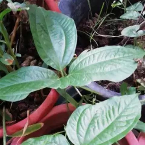 圆叶椒草直立性植株,高约30 cm。单叶互生,叶椭圆形或倒卵形。叶端钝圆,叶基渐狭至楔形。叶面光滑…