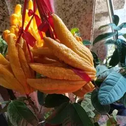 香橼为小乔木或灌木状;株高达5米;幼枝、芽及花蕾均暗紫红色;茎枝多刺,长达4厘米;单叶,…