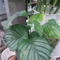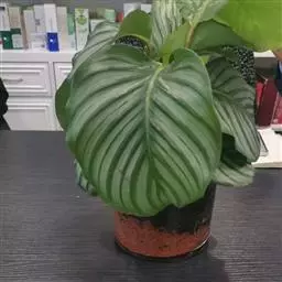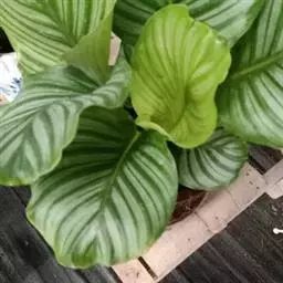 青苹果竹芋(学名:Calathea orbifolia(Linden) H.A.Kenn.) 竹芋科、竹芋属多年常绿的草本植物,根出叶,丛生状,植株高大,可达70厘米。叶柄为浅褐紫色,叶片圆形或近圆形,中肋银灰色,花序穗状。