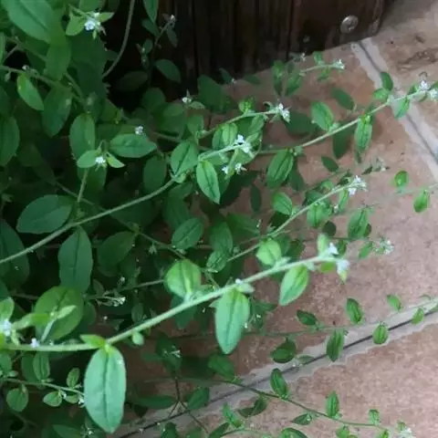 一年生蔓性草本。茎淡褐色,长达80厘米,中空,具4-6纵棱,沿棱具弯曲的短刚毛,自下部分枝。茎下部叶具柄,矩圆形,长4-7厘米,宽0.5-1.5厘米,先端微尖或钝,基部渐狭下延,两面被硬毛,茎中部以上叶较小,狭矩圆形,长0.7-2.5厘米,宽3-7毫米,先端尖,深5裂,基部楔形,两面被短刚毛,近对生;无柄。花小,单生叶腋,具短梗;花萼长约1.5毫米,深5裂,裂片条状披针形,略等大,果期2裂片增大,长达1厘米,掌状分裂,具不规则大芽齿状裂片,裂片长2-4毫米,具明显脉纹,被伏细刚毛;花冠紫色,裂片5,钝圆,长约0.8 毫米,筒长约1毫米,喉部具5半圆形的凸起体。小坚果4,具小瘤状突起,长卵形,长3.5毫米,宽2毫米,生于圆锥状雌蕊基上,着生面于果之中上部。花期5月,果期8月。2n=48。