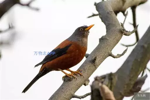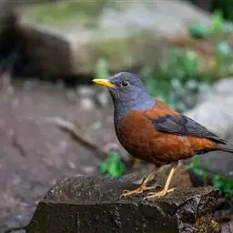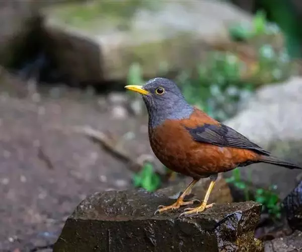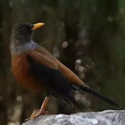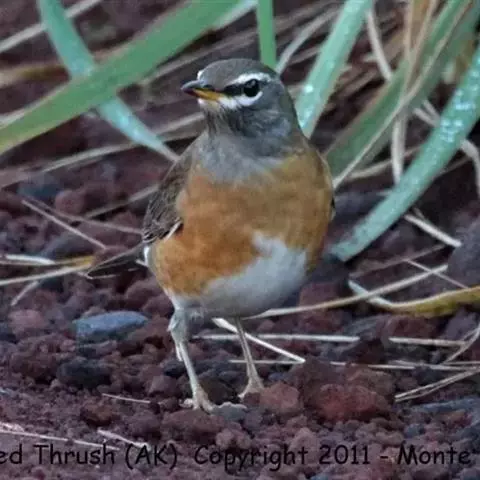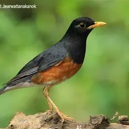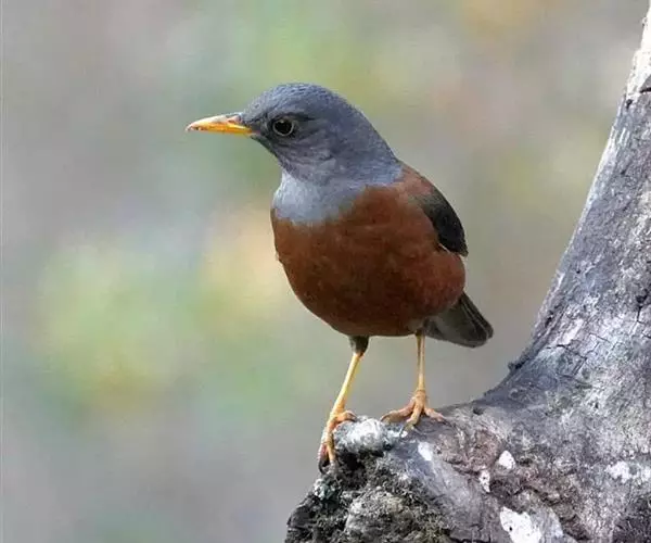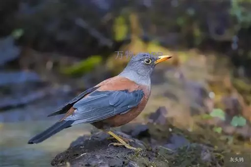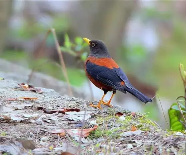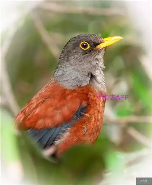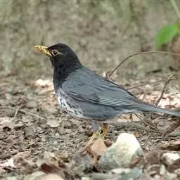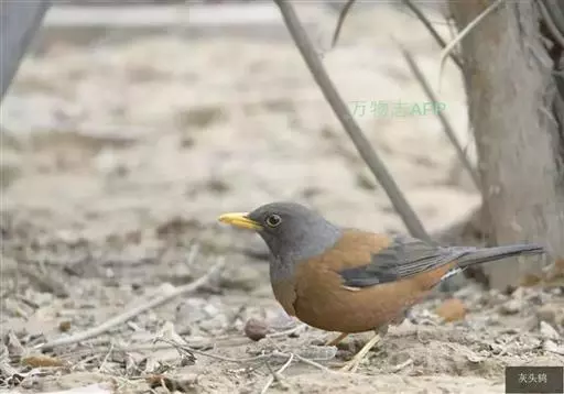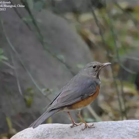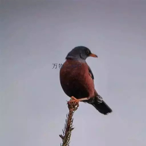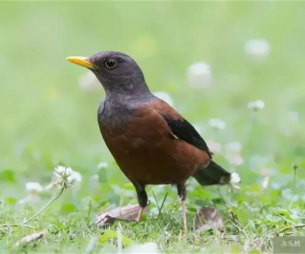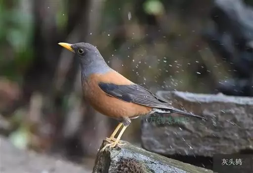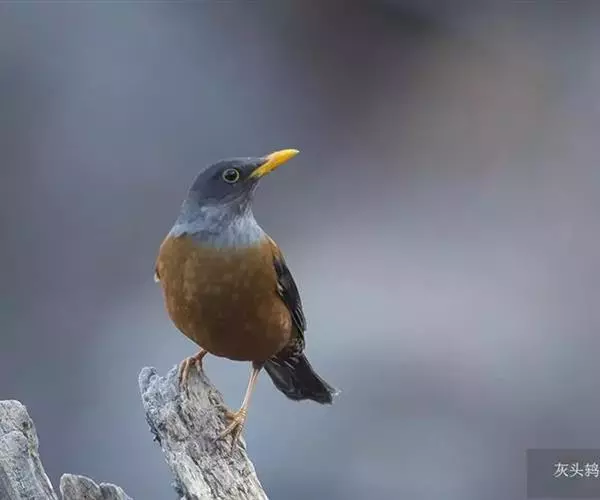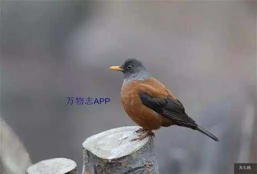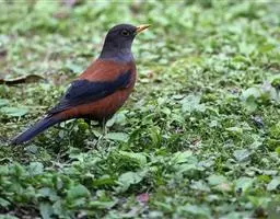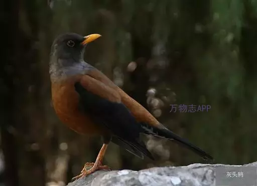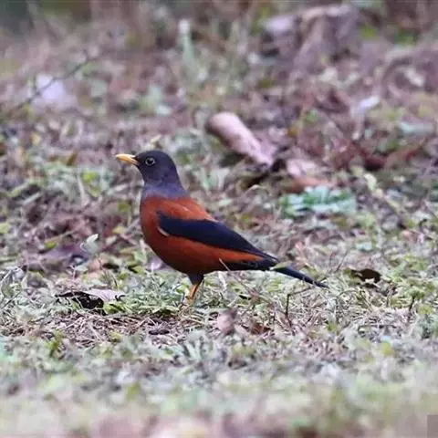 灰头鸫(学名:Turdus rubrocanus):中型鸟类,体长23-27厘米。整个头、颈和上胸褐灰色,两翅和尾黑色,上、下体羽栗棕色。颏灰白色,尾下覆羽黑色具白色羽轴纹和端斑。嘴、脚黄色。