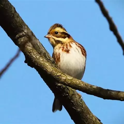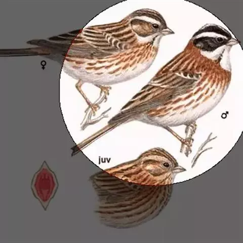 雌鸟和雄鸟相似,但羽色较淡,颏、喉白色具暗色纵纹。