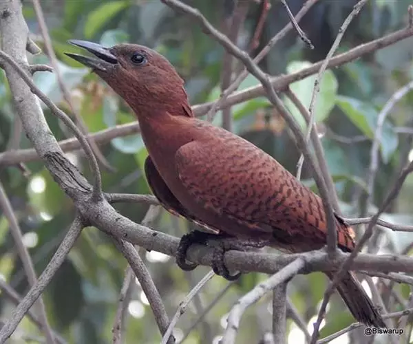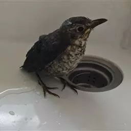 幼鸟从额至后颈、头侧和颈侧概为橄榄褐色,羽端烟灰色,上背栗色具淡棕色羽干纹和黑色端斑,下背至尾上覆羽纯栗色,两翅和尾羽黑褐色,翼上覆羽具栗色羽干纹和端斑,飞羽外翈沾橄榄褐色。颏、喉污白色,两侧具暗褐色斑点,彼此几连结成线状。胸、腹栗色具淡黄白色羽干纹和黑色羽端,尤以胸部羽干纹较粗而显著。两胁和腋羽栗色具黑色端斑,尾下覆羽黑色沾栗具粗著的淡黄白色羽干纹。