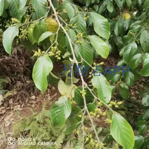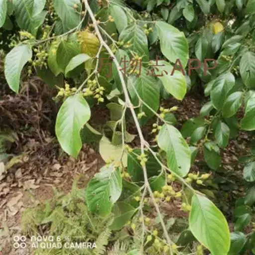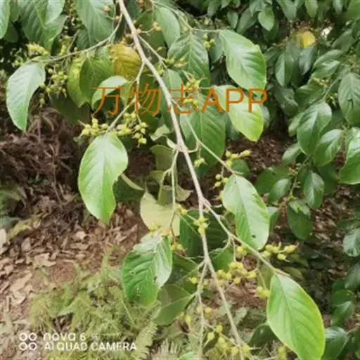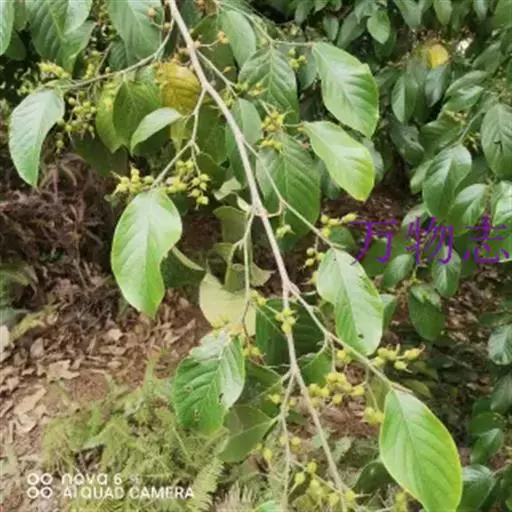 雌雄异株,聚伞花序成对腋生,序梗上疏生长糙伏毛,雄的多分枝,雌的分枝较少,成总状;雄花直径约2毫米,花被片5,宽椭圆形,中央部分增厚,边缘膜质,外面被糙毛,花药外面被细糙毛。核果具短梗,阔卵状或阔椭圆状,直径4-5毫米,侧向压扁,被贴生的细糙毛,内果皮骨质,两侧具2钝棱,熟时桔红色,具宿存的花柱及花被。花期2-4月,果期7-11月。