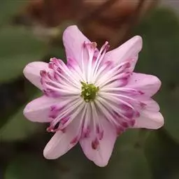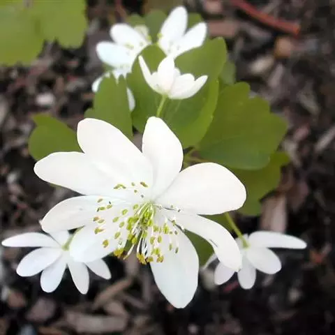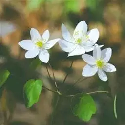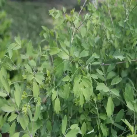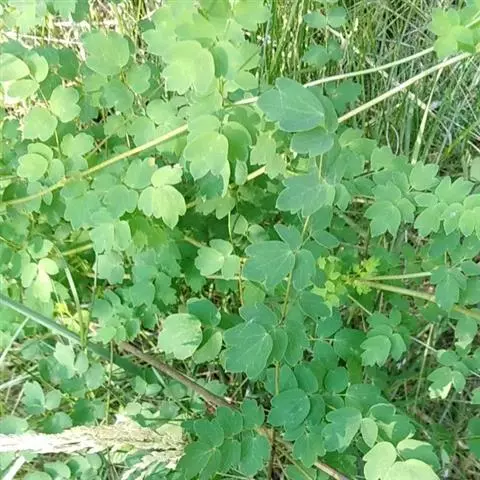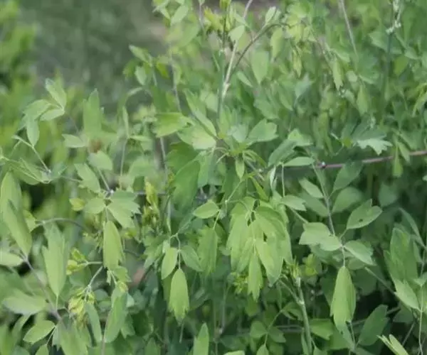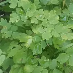 展枝唐松草 多年生草本植物。 植株全部无毛。根状茎细长,自节生出长须根。茎高60-100厘米,有细纵槽,通常自中部近二歧状分枝。基生叶在开花时枯萎。茎下部及中部叶有短柄,为二至三回羽状复叶;叶片长8-18厘米;小叶坚纸质或薄革质,顶生小叶楔状倒卵形、宽倒卵形、长圆形或圆卵形,长0.8-2(-3.5)厘米,宽0.6-1.5(-2.6)厘米,顶端急尖,基部楔形至圆形,通常三浅裂,裂片全缘或有2-3个小齿,表面脉常稍下陷,背面有白粉,脉平或稍隆起,脉网稍明显;叶柄长1-4厘米。