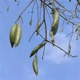 播种方法:育苗地应选择坡度平缓、阳光充足、排水良好、土层深厚肥沃的沙壤土,苗床高15 厘米左右,纯净黄心土加火烧土(比例为4:1)作育苗基质,用小木板压平基质,用撒播方法进行播种,播完种子后,用细表土或干净河沙覆盖,厚度约0.3-0.5厘米,以淋水后不露种子为宜,用遮光网遮荫,保持苗床湿润,播种后约20天种子开始发芽,经30天左右发芽结束,发芽率约40-50%。当苗高达到3-5厘米,有2-3片真叶时即可上营养袋(杯)或分床种植。用黄心土87%、火烧土10%和钙镁磷酸3%混合均匀作营养土装袋。覆盖遮光网遮荫,种植40天后,生长季节每月施1次浓度约为1%复合肥水溶液,用清水淋洗干净叶面肥液;培育1年苗高约40-60厘米,地径约0.7厘米,可达到造林苗木规格标准。
