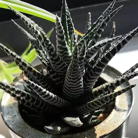 矮苇锦(拉丁学名Haworthia variegata var. modesta),百合科十二卷属/瓦苇属多肉植物。
