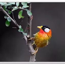 银耳相思鸟小型鸟类,体长14~18厘米。头顶黑色,耳羽银灰色,前额橙黄色;外侧飞羽橙黄色,基部朱红色,…