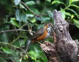 白颊噪鹛是雀形目噪鹛科噪鹛属鸟类,又称土画眉、小画眉、小噪鹃。成鸟额至头顶栗褐色,…