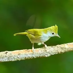 白腹凤鹛是绿鹃科、绿凤鹛属的小型鸟类,体长10-12厘米。上体从头到尾黄绿色,有短的羽冠,…