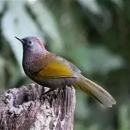 丽色噪鹛是红翅噪鹛的指名亚种。中型鸟类,体长23-28厘米。头顶灰橄榄褐色具粗著的黑色纵纹,头侧、…