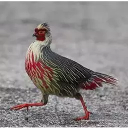 血雉雉科血雉属鸟类,别名血鸡、松花鸡,血雉的雄鸟大覆羽、尾下覆羽、尾上覆羽、脚、头侧、腊膜为红色,…