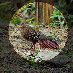 红腹角雉属于鸡形目雉科,雄鸟体羽及两翅主要为深栗红色,满布具黑缘的灰色眼状斑,下体灰斑大而色浅。雌…