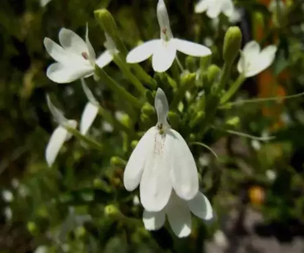 圆锥花序由小聚伞花序组成,顶生或有时腋生;花序轴通常2或3回分枝,通常3出,密被短柔毛;苞片和小苞片长约1毫米;花萼内外均被茸毛,裂片长约2毫米;花冠白色,长2.5厘米或过之,被柔毛,上唇线状披针形,比下唇短,顶端常下弯,下唇3深裂至中部,冠檐裂片倒卵形,近等大。