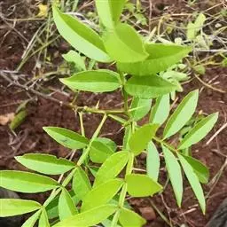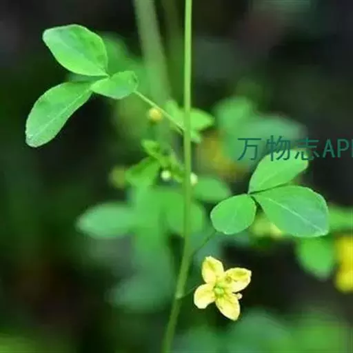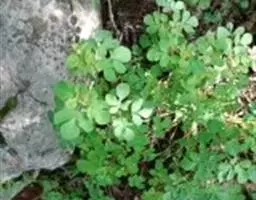 多年宿根草本植物,植株高30-80厘米。根纤细。叶有柑橘叶香气,叶柄长8-15毫米;小叶椭圆形或倒卵状椭圆形,中间1片最大,长很少达3厘米,宽不到1厘米,两侧2片甚小,长4-10毫米,宽2-6毫米,顶端钝或圆,微凹缺,下部狭至楔尖,边缘有不规则亦不明显的钝裂齿,无毛,背面灰绿色。
