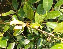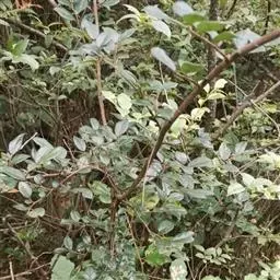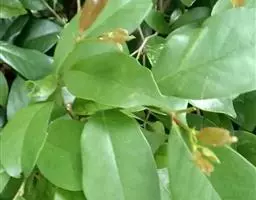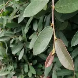 常绿乔木高14米;嫩枝被鳞垢;老枝暗褐色,秃净无毛;顶芽裸露。叶革质,长卵形或披针形,长5-12厘米,宽2.5-4厘米,先端渐尖,基部楔形或钝;上面深绿色,发亮,秃净无毛,下面橄榄绿色,略有稀疏星状柔毛,通常嫩叶两面有星状柔毛、兼有鳞垢,老叶秃净无毛;侧脉6-7对,在上面干后轻微下陷,在下面不显著;全缘或中部以上有几个小锯齿;叶柄长8-18毫米,被鳞垢。