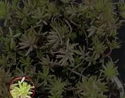 薄雪万年草别名矶小松,景天科景天属多年生草本植物,其细小的蓝绿色棒状叶片环绕生长于茎端,…