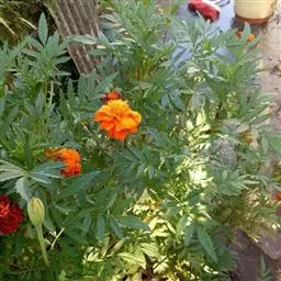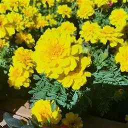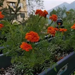万寿菊是菊科万寿菊属一年生草本植物,别名孔雀菊、缎子花、臭菊花、西番菊、红黄草、小万寿菊、臭芙蓉、孔雀草。万寿菊茎近基部分枝。叶羽状分裂,长5-10厘米,宽4-8厘米,裂片长椭圆形或披针形,具锐齿,上部叶裂片齿端有长细芒,叶缘有少数腺体。头状花序单生,径5-8厘米,花序梗顶端棍棒状。总苞长1.8-2厘米,径1-1.5厘米,杯状,顶端具尖齿。舌状花黄或暗橙黄色,长2.9厘米,舌片倒卵形,长1.4厘米,基部成长爪,先端微弯缺。管状花花冠黄色,长约9毫米,冠檐5齿裂。瘦果线形,被微毛;冠毛有1-2长芒和2-3短而钝鳞片。花期7-9月。万寿菊中国各地均有栽培,在广东和云南南部、东南部已归化,国外原产墨西哥。万寿菊对土壤要求不严,但以肥沃疏松排水良好的土壤为好。耐移栽,种子发芽适温21-24℃,植株生长适合温度为20-29℃。喜温暖和阳光充足的环境,不