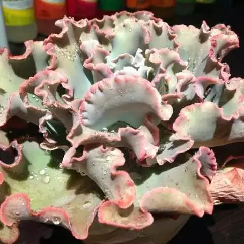 薄叶蓝鸟 叶片蓝绿色,叶尖红色,带粉,花型紧凑,非常漂亮。原产于墨西哥,现世界各地均有栽培。