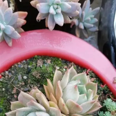 立田锦多肉,易群生的景天科拟石莲花属和厚叶草属杂交多肉品种。茎直立,株高30厘米以内,其叶排列呈莲…