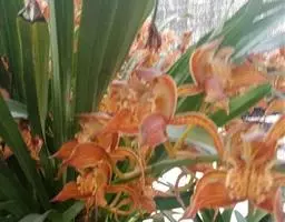 大苞鞘石斛:茎斜立或下垂,肉质状肥厚,圆柱形不分枝,具多节;节间多少肿胀呈棒状。叶薄革质,二列,狭…