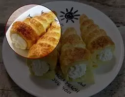 1.把60克黄油切成小块,用微波炉加热40秒左右使其融化,并加入水油皮的其它原料(中筋面粉150克、水40克、砂糖40克,),揉成光滑的面团,静置20分钟。要尽量揉出筋,不然容易破