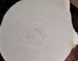 6.取一个水油皮面团滚圆压扁擀成像饺子皮那样。我没有擀面杖,用的是一个棍型的东西。操作过程中其他的皮都要用保鲜膜盖住