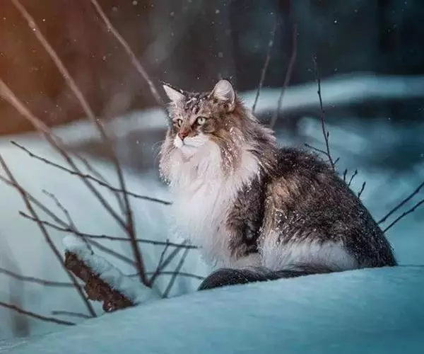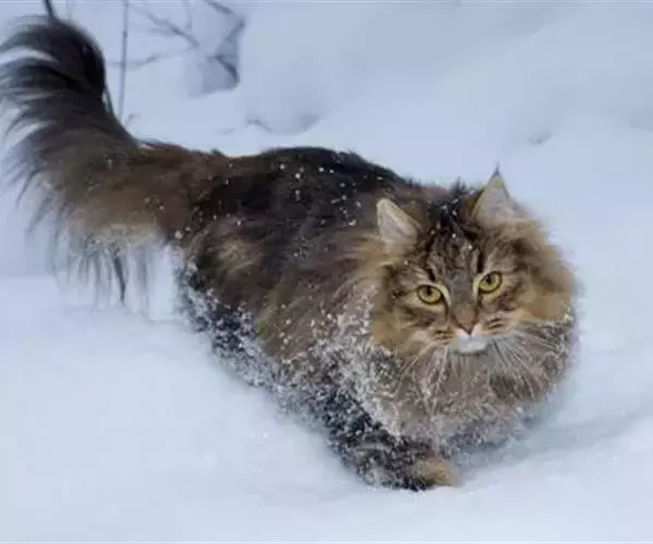 挪威森林猫外貌上和缅因库恩猫一模一样,挪威森林猫与缅因库恩猫的主要区别是:其后腿比前腿稍长,被毛双层。