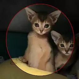 大杏眼, 表情丰富,双眼微微上扬,绿色、金色或金绿色的色度, 白猫可拥有蓝眼或鸳鸯眼。
