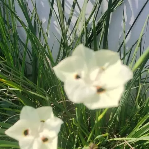 双色野鸢尾为多年生草本植物,叶子呈剑状淡绿色。…