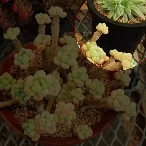 七宝树锦为菊科千里光属多年生肉质草本,是七宝树的锦斑品种,在春秋生长,夏季高温半休眠。