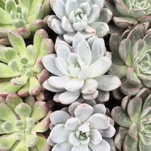 花乃井是景天科拟石莲花属的多肉植物,原产于墨西哥。株型小巧,叶片饱满,在阳光充足、温差大的环境下叶…