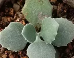 叶子表面宽厚,富肉质感且带有磨纱质感,看像石头质地;开红色小花,生于植株顶部,倒伞形密生,形状像花…