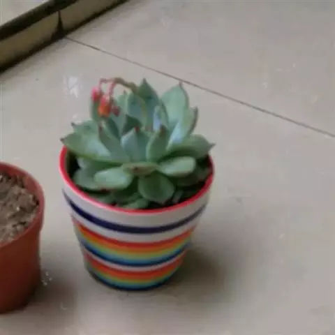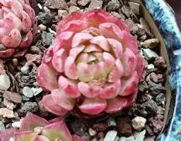 小红衣是景天科、拟石莲花属的一种多肉植物。叶片匙形,扁平细长,叶表具白粉,有明显的半透明边缘,…