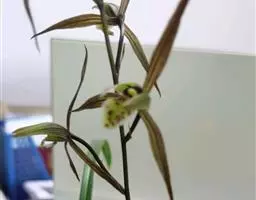 寒兰是兰科兰属的地生草本植物。茎为椭圆形;叶呈带状,尾部修长渐尖,叶脉较明显;每秆花枝开5-12朵,…