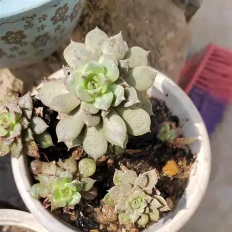 景天科风车草属的多肉植物,原产于墨西哥。株形和风车草属胧月极为相似。花瓣被蜡,叶排成延长的莲座状被…