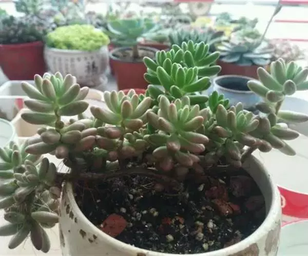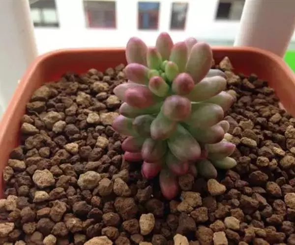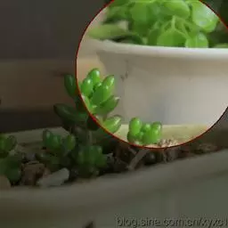 用扦插繁殖。于生长季节从健壮的植株上切取叶片.放阴凉的环境中晾几天,待稍干后即入盆沙中,少量浇水,保持盆沙潮润,极易生根成活。当根长达到2-3厘米时,即可移入小盆中培养。枝插或叶插均可,以叶插为好。每月浇2次水,喜光,盛水的托盘请务必扔掉。它的可爱叶子,冬天的时候会悄悄变成粉红色。不怕冷,由于叶子含充足水分,因此易于种植。 只要注意不要长期浇太多水,非常好养。如果放到强烈的太阳下,包括在盛夏,都不会有什么问题,而且接受强光照射还能让它们长得更加粉嫩可爱(在强烈光线下也会透出粉色,非常漂亮)。但它们都有很强的趋光性,如果光线不均匀,他们会朝一边长,株型就不好看了。所以如果是在阳台养,最好是经常转转盆。