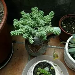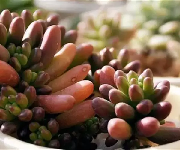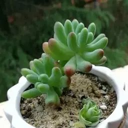 玉米石是景天科、景天属植物。多年生草本多浆植物。植株低矮丛生,多分枝。叶膨大成圆筒形、卵形或近小球形,…