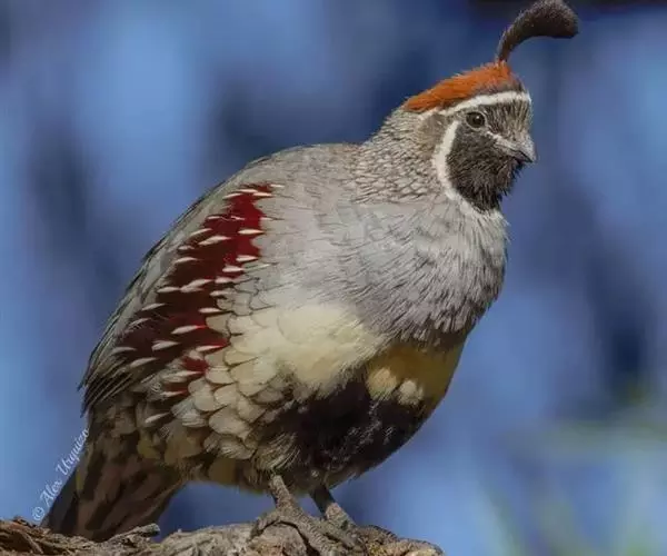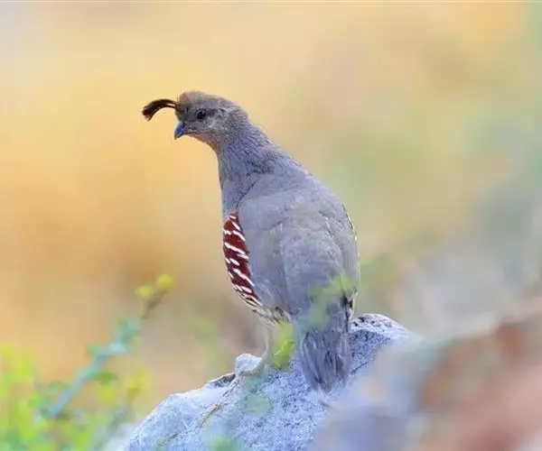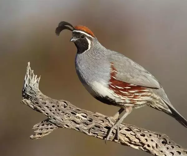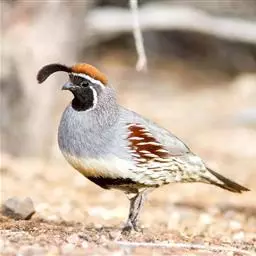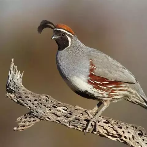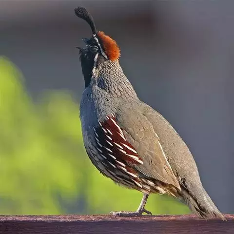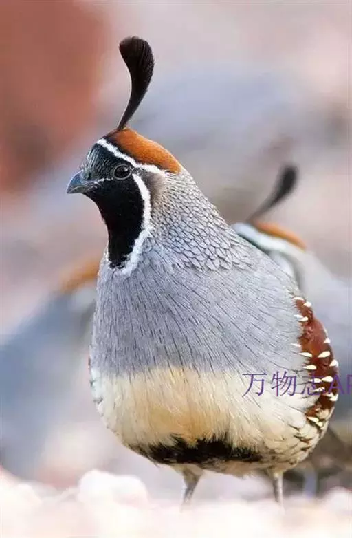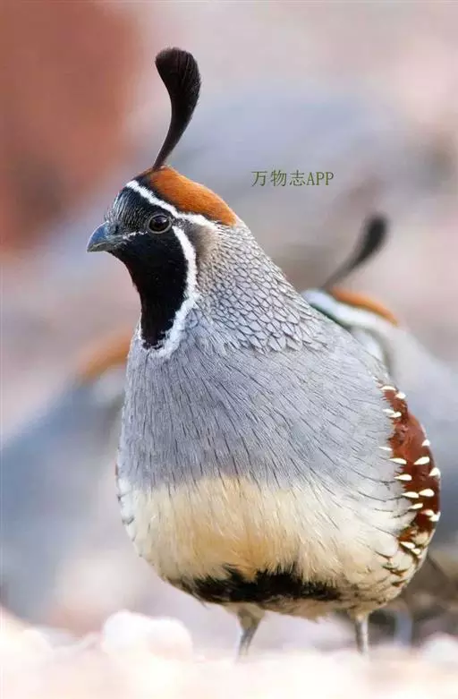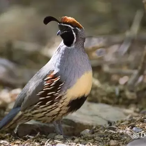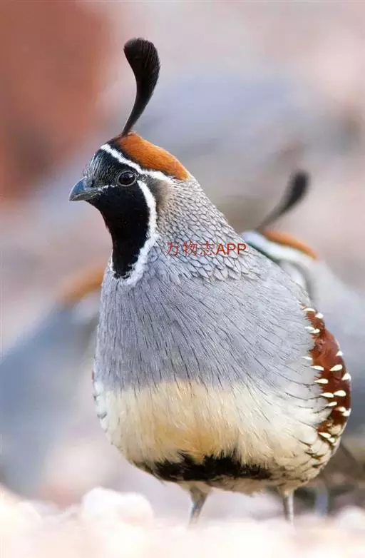 黑腹翎鹑(学名:Callipepla gambelii)属鸡形目齿鹑科,有7个亚种,分布区域不同个体略有差异。羽色绚丽、形态健美,雄鸟比雌鸟美丽。最显著的特点是额头上有一个黑色的弯曲冠羽,与珠颈翎鹑相似。主要的食物是种子、浆果,有时也吃一些树叶、草根和昆虫。觅食是多用脚趾挖后用喙取食。一般以2名成鸟和可变数量的亚成鸟组成小群,多达16只,有其特定的领活动区域。