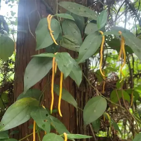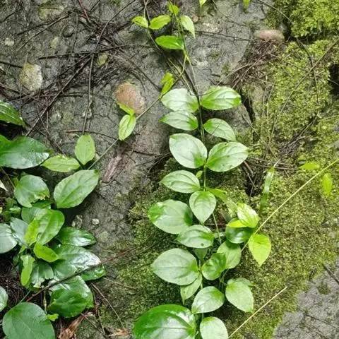 假蒟是胡椒科胡椒属多年生草本植物。小枝近直立,无毛或幼时被极细的粉状短柔毛;叶近膜质,有细腺点,…